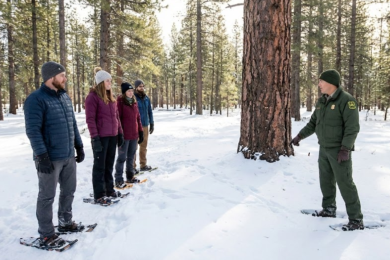A naturalist ranger takes you out, teaches you about winter ecology—animal tracks, tree species, volcanic geology—and ensures everyone stays safe. They generally provide the snowshoes for the tour, making this the perfect entry point for beginners.